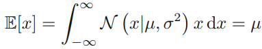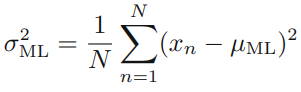 최대 가능도 해인 \(\mu _{ML}\)와 \(\sigma_{ML}^{2}\)은 데이터 집합들의 함수이다. 각 데이터 집합의 값에 대해 이들의 기댓값을 고려해보면 다음과 같이 유도할 수 있다.