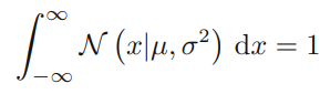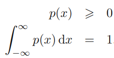 확률은 양의 값을 가지고 합이 1이기 때문에 확률 밀도 함수는 아래의 조건을 만족시켜야 한다.