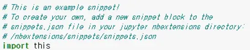 - nbextension에는 다양한 기능이 있는데, 그 중에서도 snippets을 자주 사용합니다.